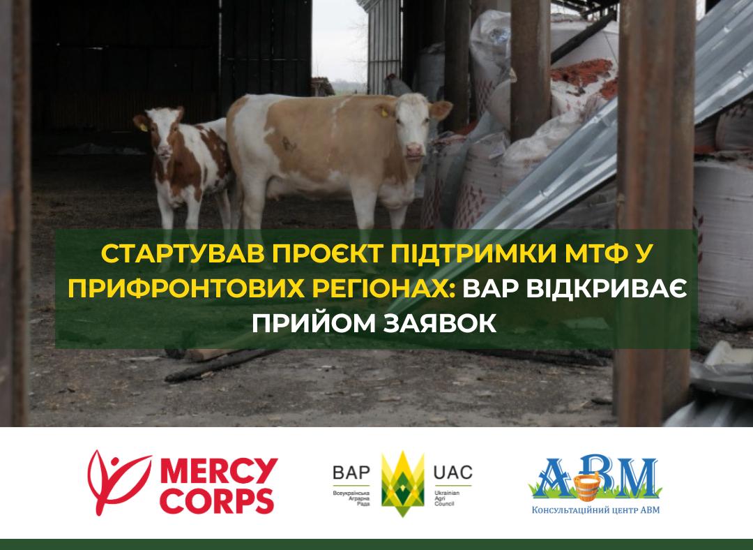 The Ukrainian Agri Council (UAC) and the Advisory Center of the Association of Milk Producers (AMP) announce the launch of a new component of a project aimed at supporting small and medium-sized dairy farms in frontline regions, implemented in partnership with the international humanitarian organization MERCY CORPS. Applications from dairy farms are now open.