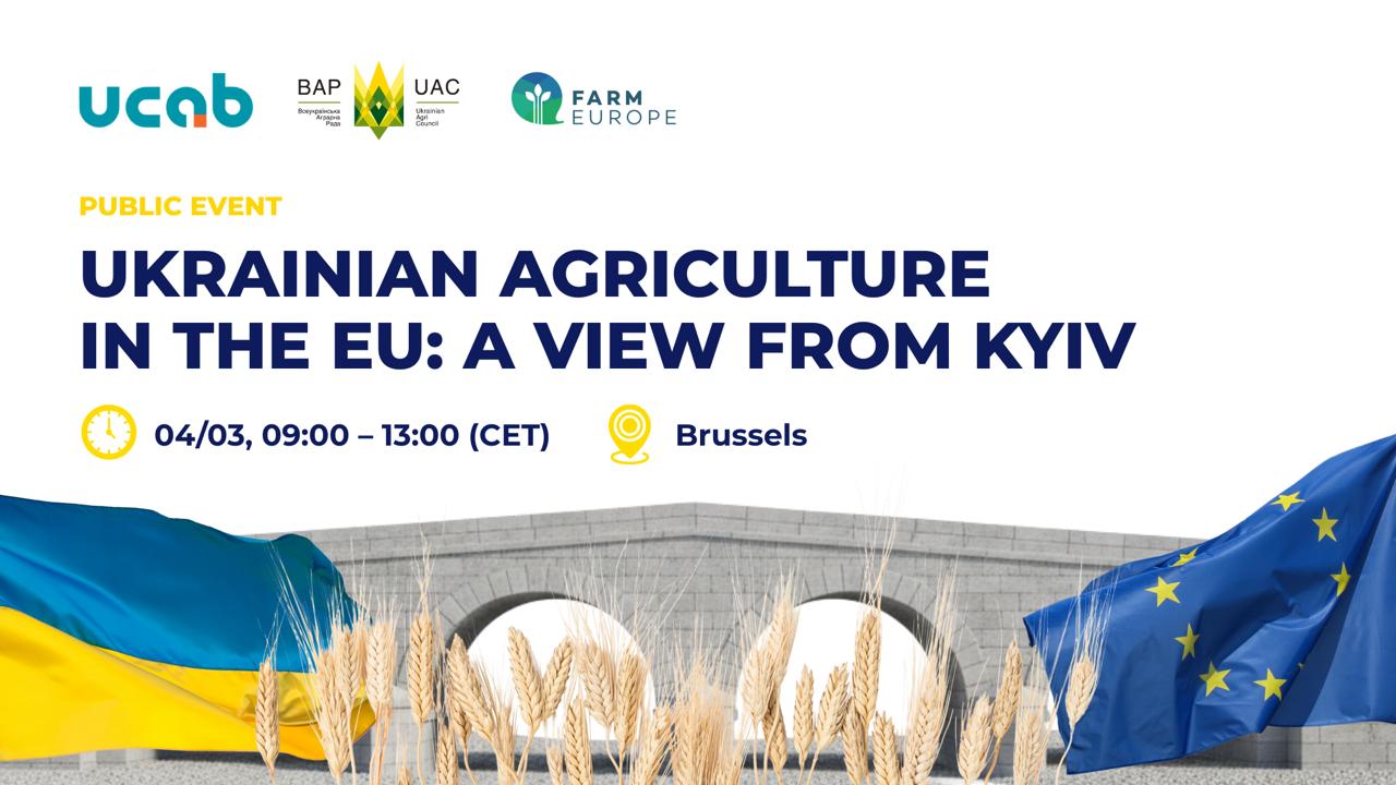The Ukrainian Agribusiness Club (UCAB) together with the Ukrainian Agri Council (UAC) invite you to a public event “Ukrainian Agriculture in the EU: A View from Kyiv”, dedicated to the European integration of the Ukrainian agricultural sector.
