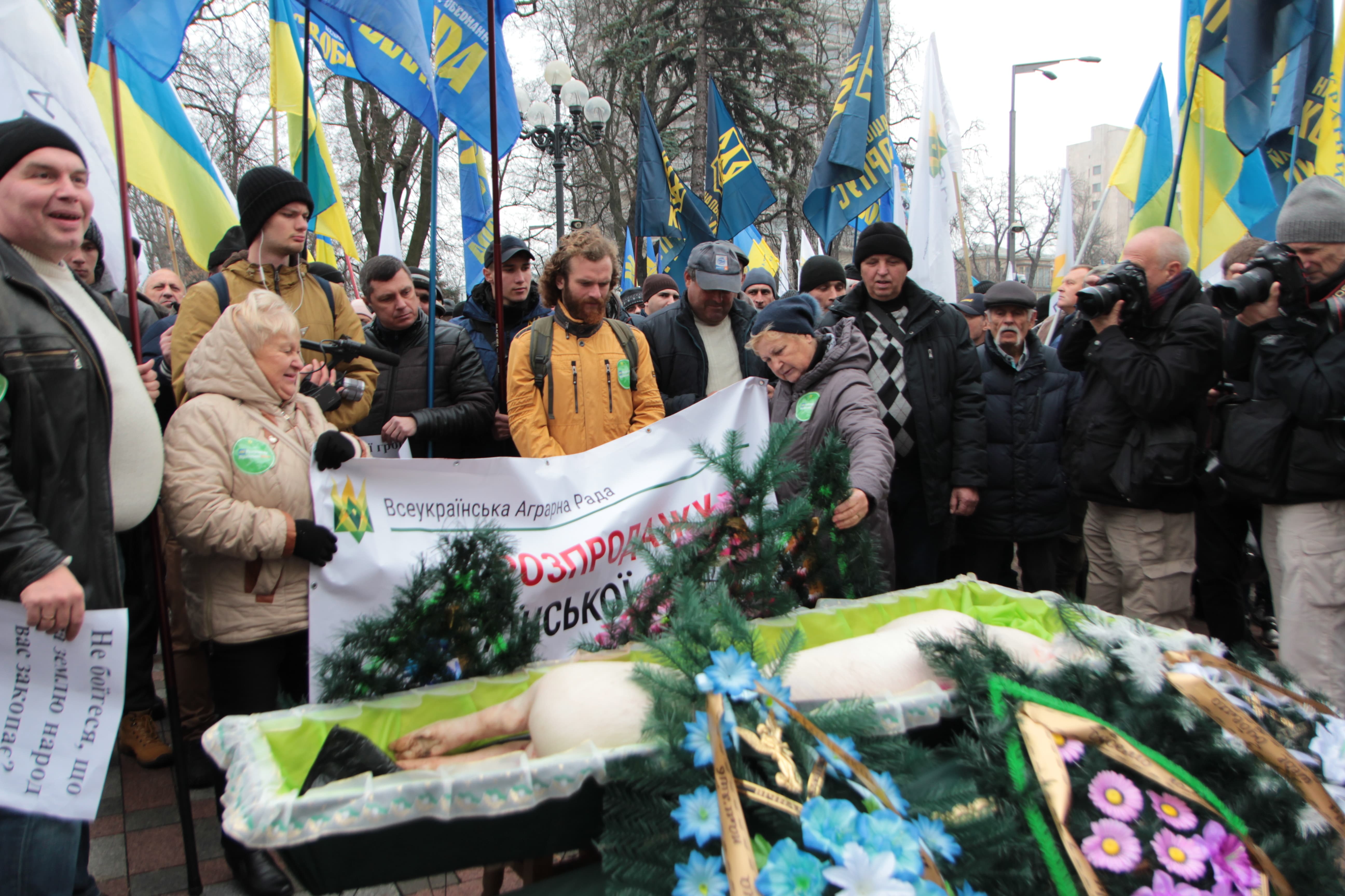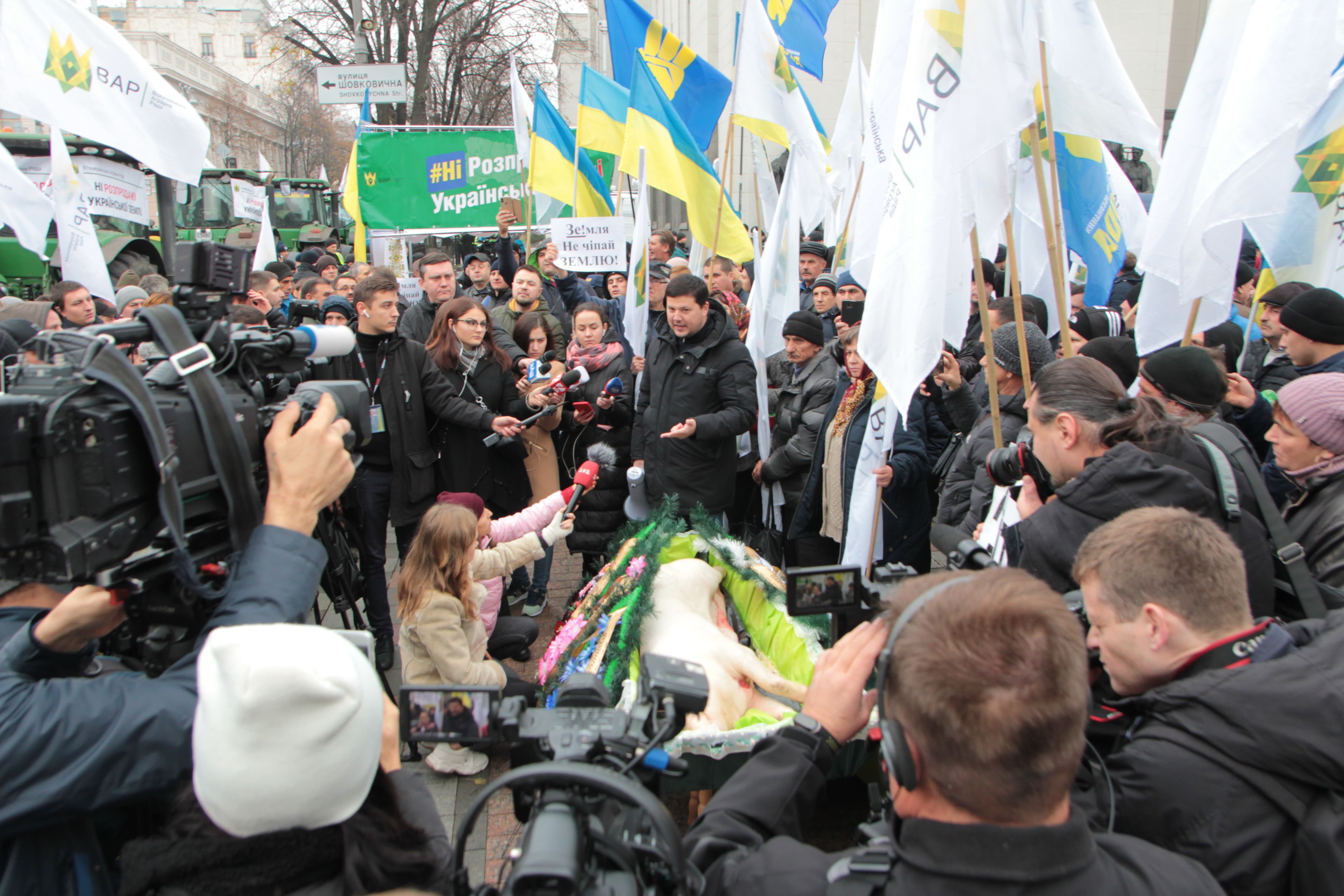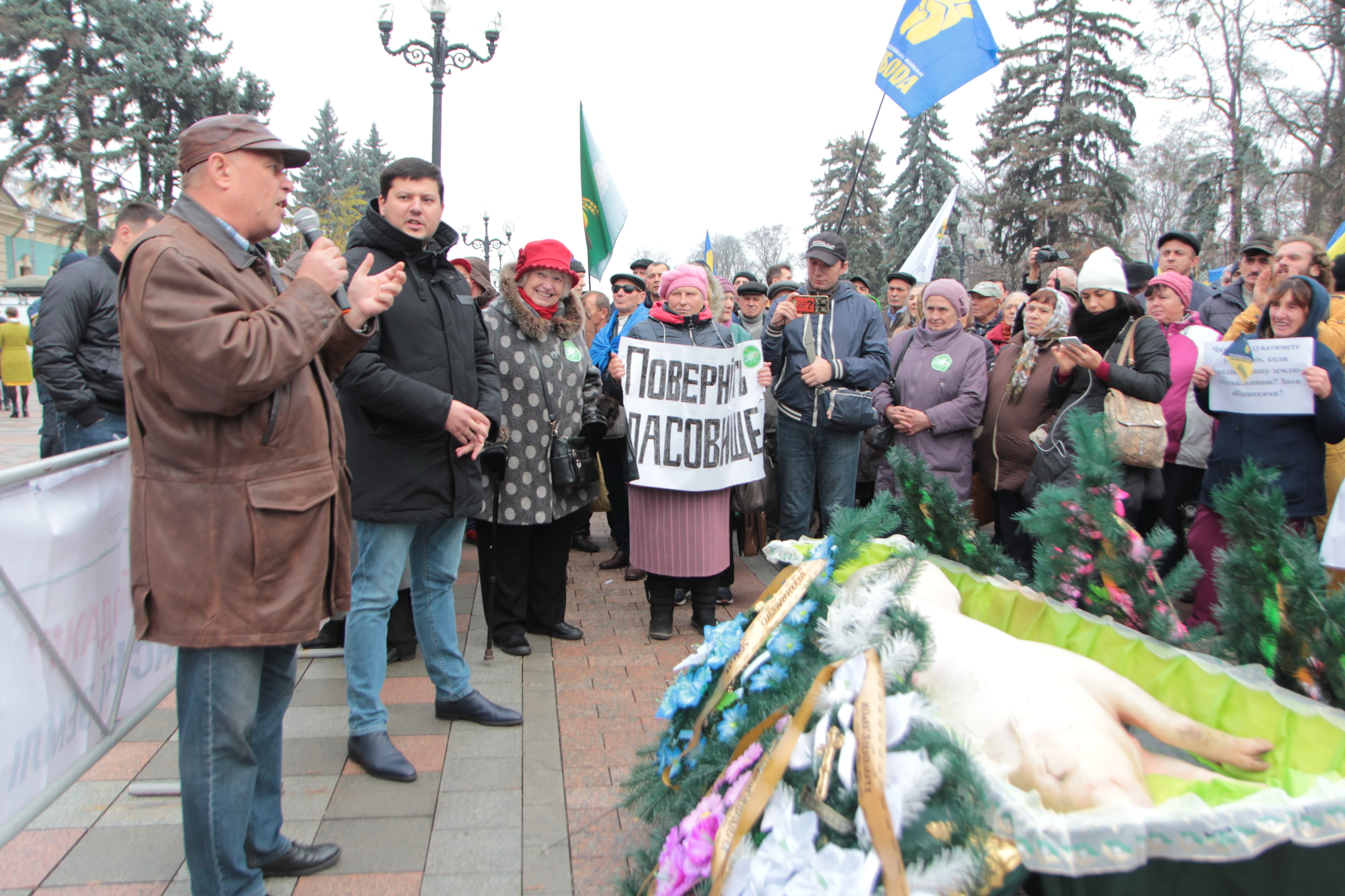 Аграрії влаштували похорони свині, що символізують занепад галузі тваринництва у разі впровадження "дикого" ринку землі