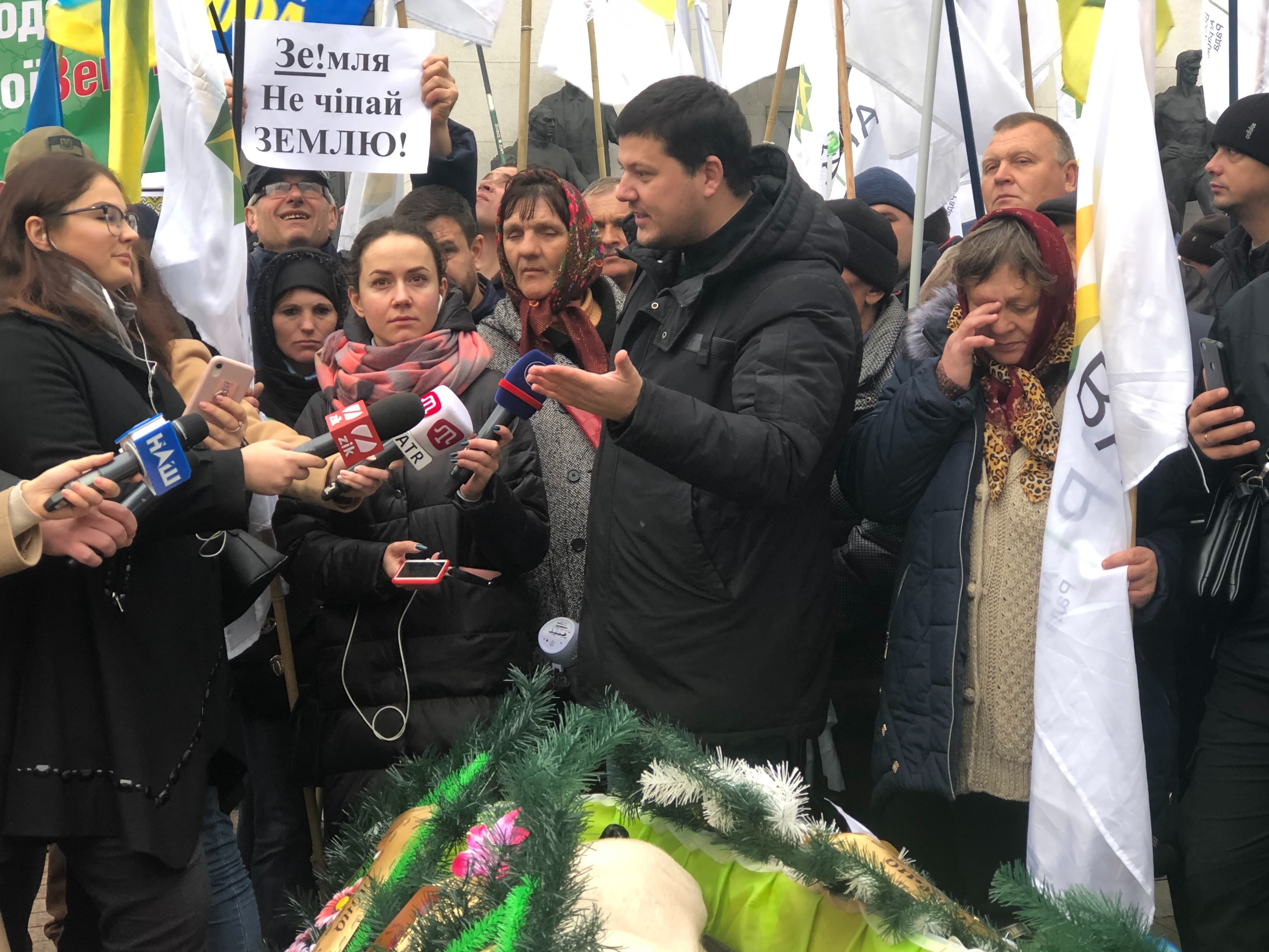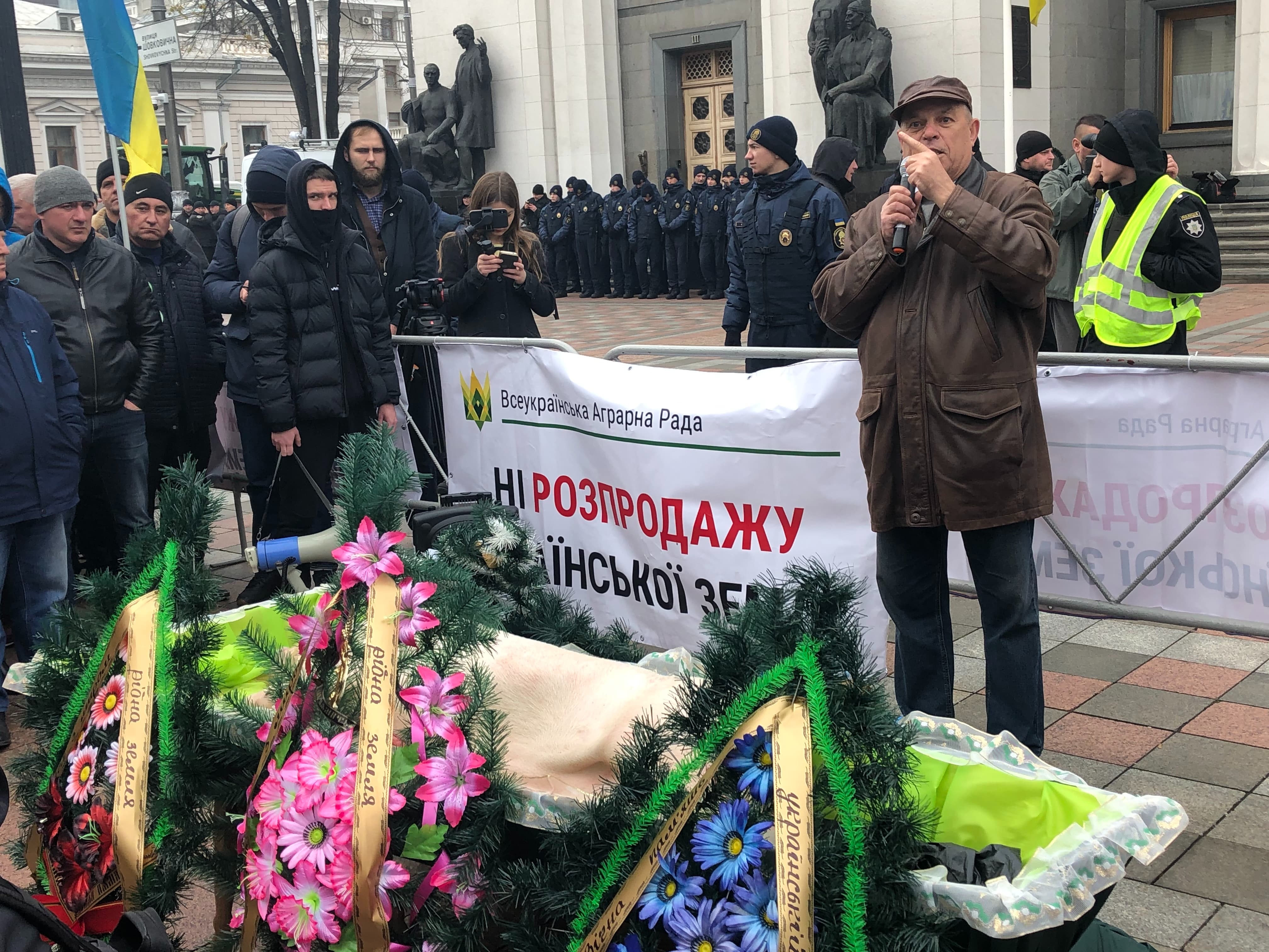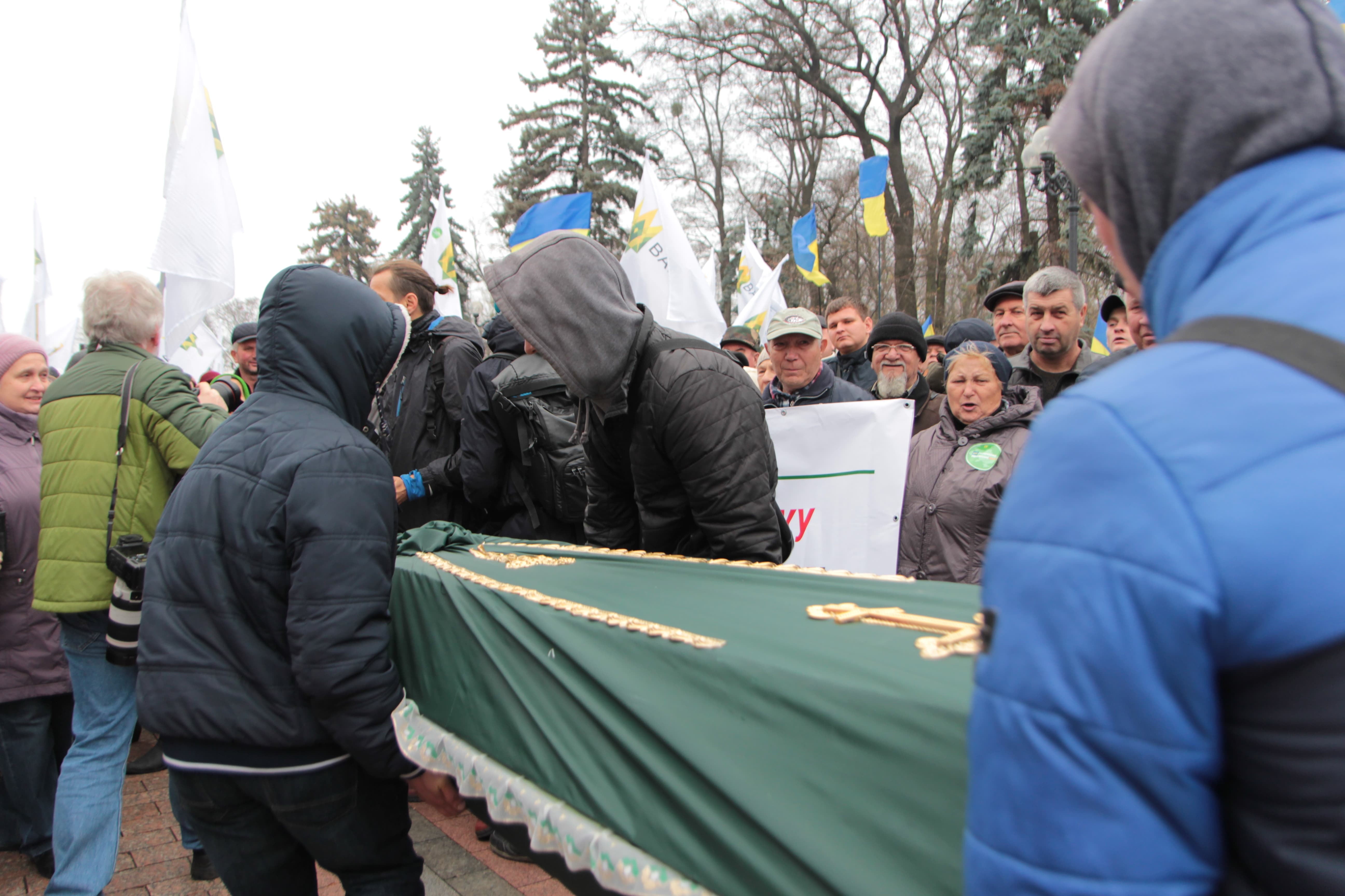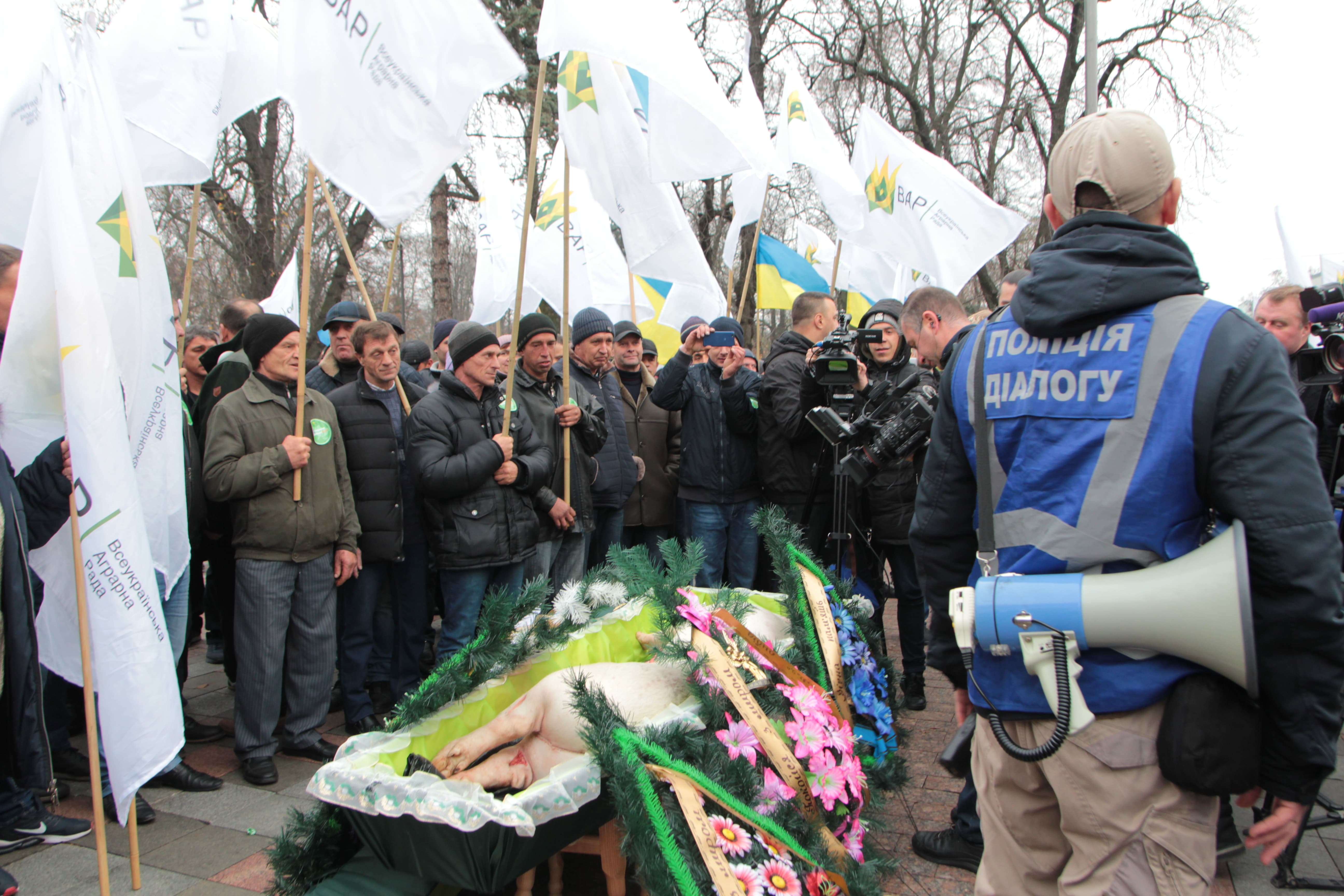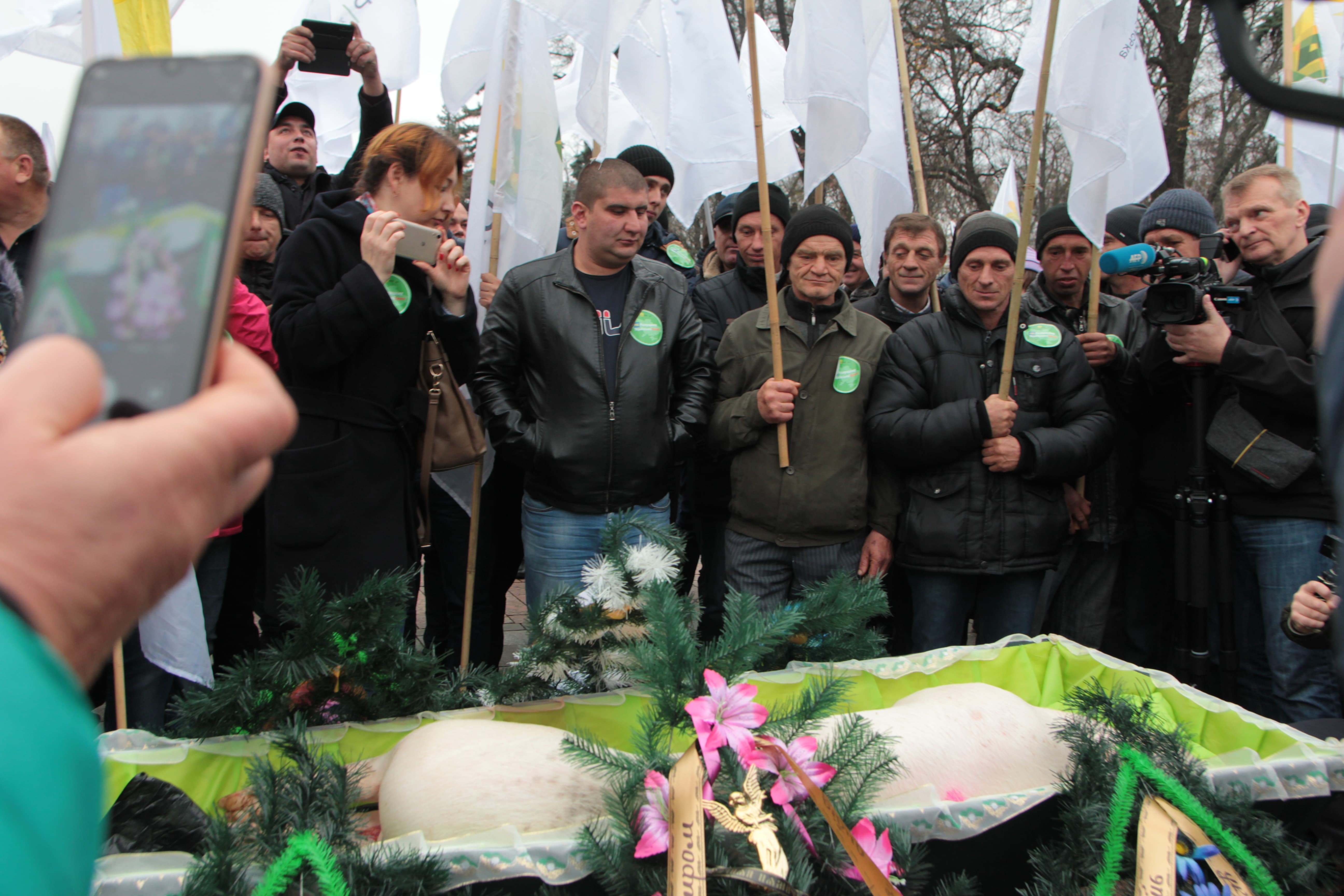 Аграрії влаштували похорони свині, що символізують занепад галузі тваринництва у разі впровадження "дикого" ринку землі